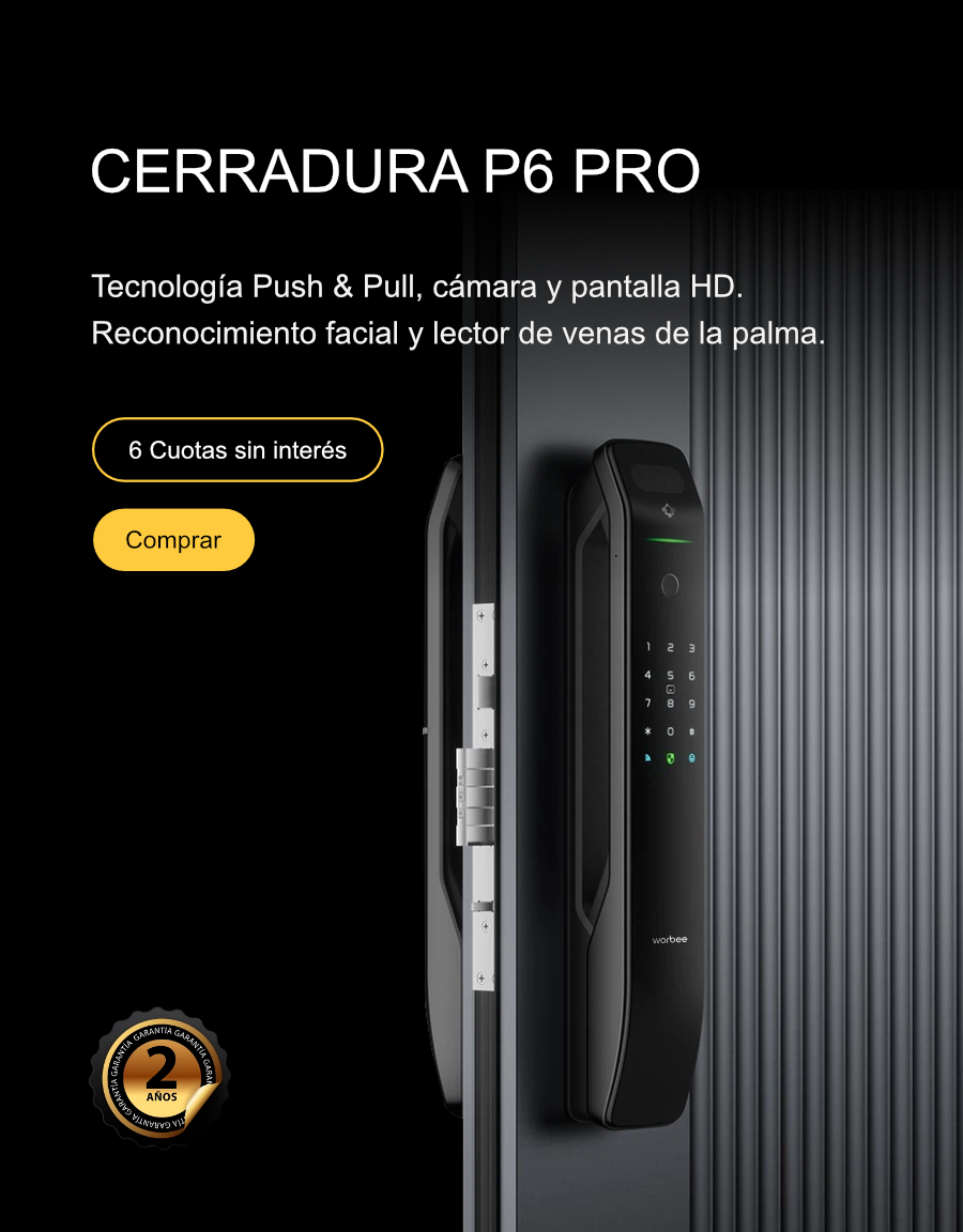 Cerradura automática de gran tamaño. Admite desbloqueo por huella, clave, APP móvil, llave física y tarjeta. Cuenta con seguro para niños, bloqueo automático y sistema Push & Pull.
