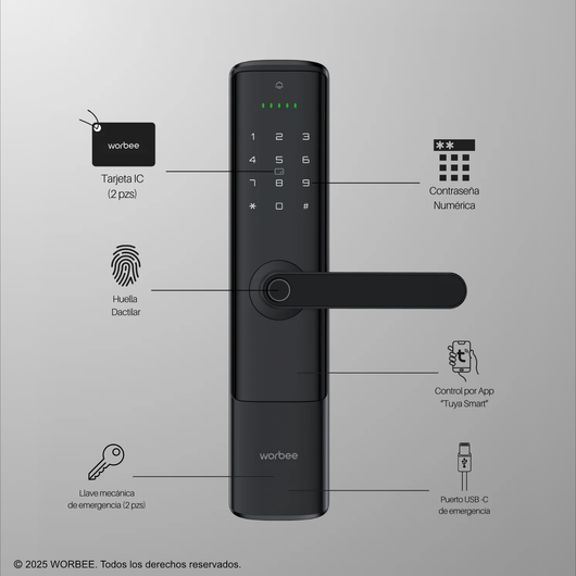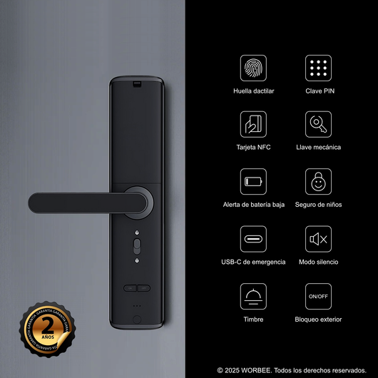 Cerradura premium fabricada con materiales de alta calidad que aseguran una máxima durabilidad. Incluye 2 años de garantía y servicio técnico autorizado. Inversión segura y respaldada.